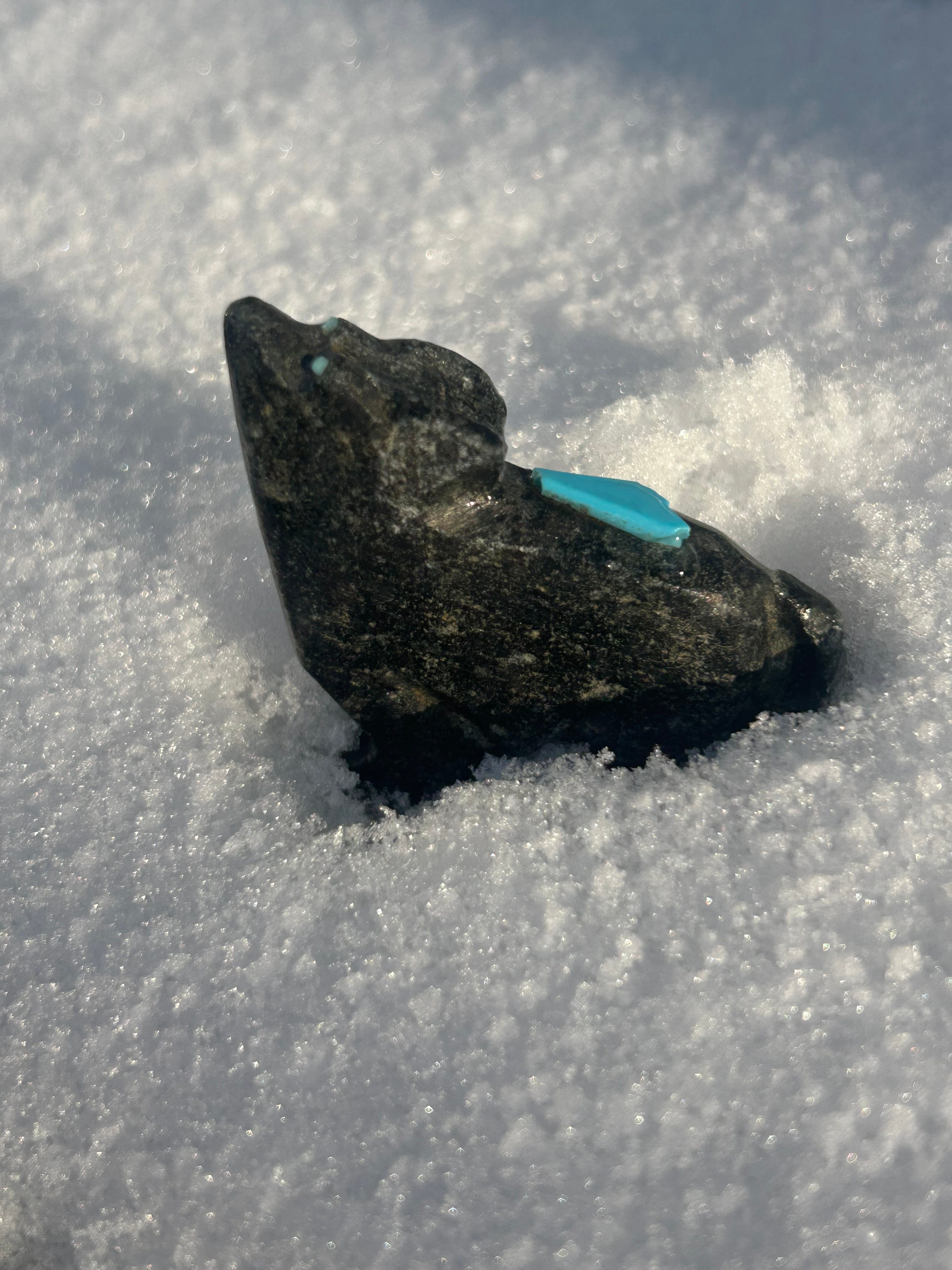 A Navaho friend and his brother once visited me in New York. It was his brother’s first time in New York and first time meeting me. When they arrived to my basement apartment in Brooklyn, the brother pressed a dark grey stone carved into the shape of a howling wolf into my hand and said,